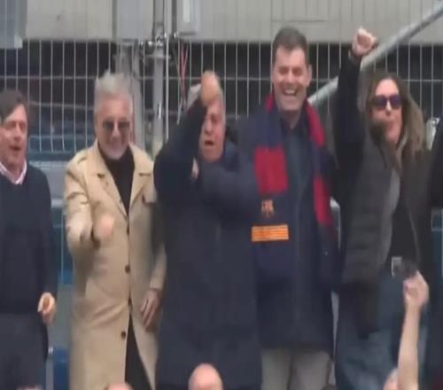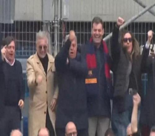 巴萨大胜!拉波尔塔看台高歌“不跳就是皇马人”,一个手势引热议