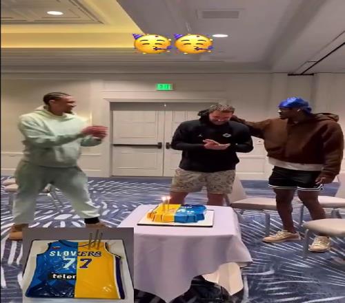 排面湖人为东契奇庆生詹皇领唱生日歌,海斯范德彪护法077吹蜡烛