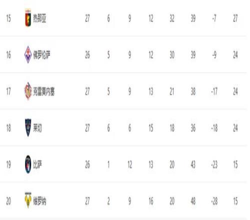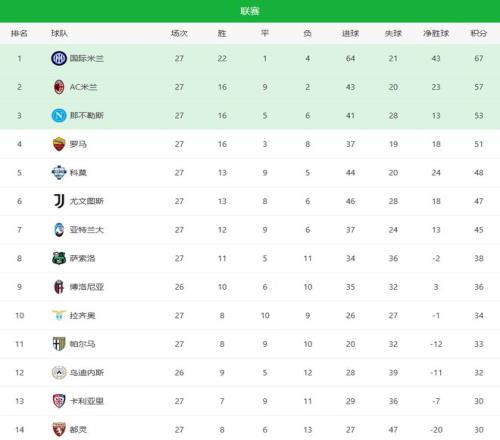 随着AC米兰20+尤文33绝平罗马!意甲最新积分榜:26名差10分
