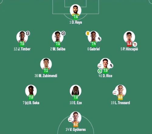 技术统计显示,拉亚本场贡献4次扑救,其中两次为禁区内扑救,当选队内最佳球员。加布里埃尔则凭借一次助攻和全场稳健的发挥,被英超官方评为全场最佳。