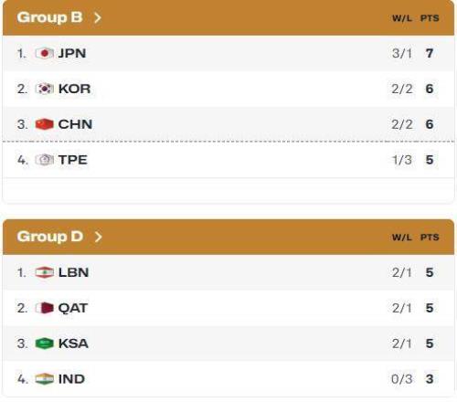目前B组前三名为日本、韩国、中国,第四名是中国台北,D组前三名为黎巴嫩、卡塔尔、沙特阿拉伯,第四名是印度??悸堑街泄ū焙陀《群芸赡芪薹ㄏ蛏吓郎泄欣航拥谒拇翱诳济娑岳璋湍?、卡塔尔、沙特三个对手,届时中东地区的局势也将影响中国男篮的赛程安排。