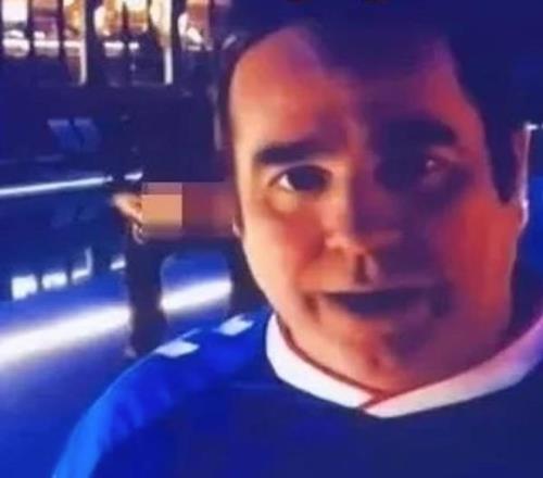 采访突然被打断,塔夫身后一名身穿深色衣服的男子对着镜头弯下腰,拉下了裤子。