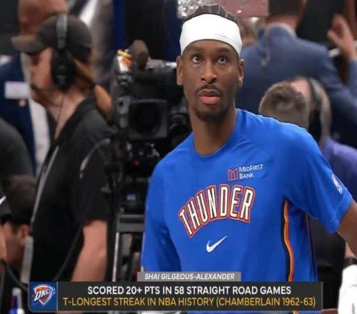 亚历山大连续59个客场得分20+,超越张伯伦在1962-63赛季保持的连续58场纪录,创NBA历史第一纪录。