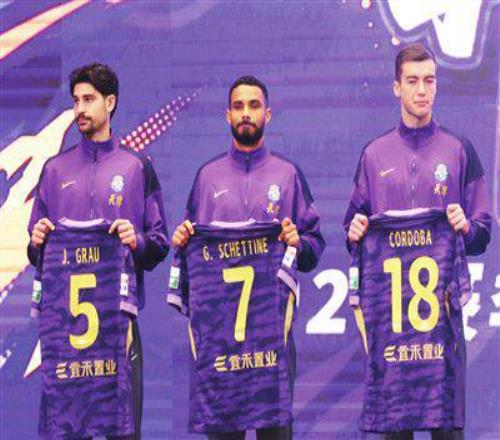 前天上午,津门虎俱乐部举行了主题为“砥砺奋进 并肩前行”的新赛季壮行会?;嵘希录尤虢蛎呕⒍拥?0名内、外援,也在壮行会上正式接过了印着自己名字和号码的比赛服。其中豪梅·格劳身披5号球衣、谢蒂内接过了阿代米的7号球衣、刘帅16号、吴兴涵17号、科尔多瓦18号、季胜攀20号、齐雨熙21号、乃博宁林33号、李帅琪38号、蔡承峻39号。