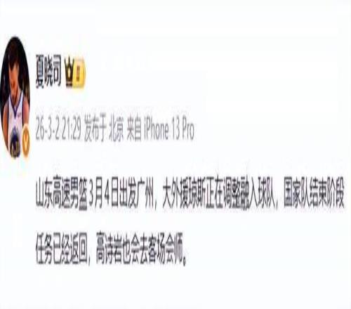 夏晓司说:“差不多第一场?!笔?号对广州?还是第二阶段揭幕战?没人敢断言。但关键不是时间,是他来了。山东的小外,从鲍威尔的低效到珀塞尔的波动,早已是全联盟笑柄。如今,俱乐部终于出手——一个打过NBA、没来过CBA、实力不俗的“神秘人”。他不一定是得分王,但他必须是那个能在最后30秒,一记干拔终结比赛的人。