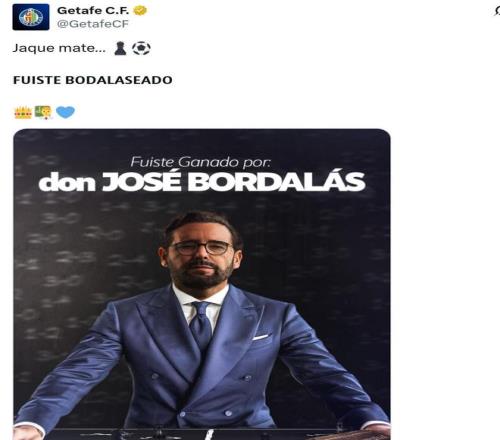 而在另一条中,赫塔费官媒则发出球队主帅博尔达拉斯的照片并配文:“将死。(Jaque mate)”