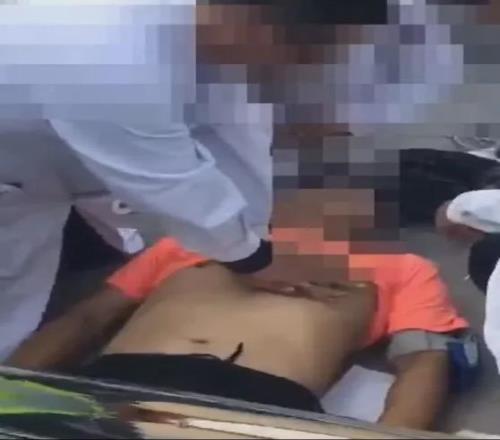 钟先生被施救的现?。ㄍ荚碄视频截图)▼