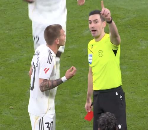 伤停补时阶段,马斯坦托诺由于对判罚不满,怒喷裁判,被红牌罚下场。之后赫塔费球员利索在裁判鸣哨后踢走皮球,两黄变一红离场。最终,皇马0-1不敌赫塔费。比赛争议不断,赫塔费队共吃到6张黄牌以及1张红牌,皇马4黄1红,赛后两队都对裁判的判罚感到不满意。