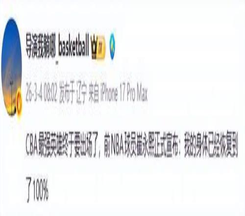 根据著名媒体人导演我躺哪报道,这位曾在NBA夏季联赛崭露头角的年轻锋线,通过个人社交媒体正式宣布:“我的身体已经恢复到了100%?!倍潭桃痪浠?,就像一颗投入湖面的巨石,瞬间在篮球圈激起千层浪。而更让球迷热血沸腾的是,他的复出首秀,就要对阵联赛中的劲旅新疆队。