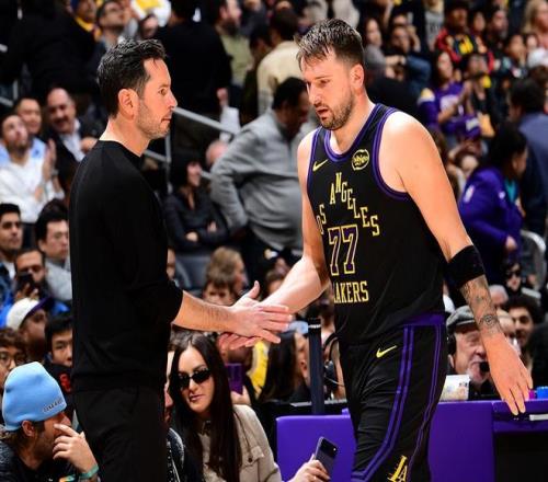与此同时,老詹和东契奇还共同书写多项NBA纪录。据NBA官网数据统计,这是老詹生涯第966次单场至少砍下20+5+5,排在NBA历史第1位;这是东契奇本赛季第15次单场至少砍下25+10+5,他是湖人队史自2001年的奥尼尔(21?。┖蟮ト咀龅秸庖坏阕疃嗟那蛟?。在另外一项数据统计中,进入2026年之后,东契奇20次单场砍下20+5+5,联盟最多,排名第2的正是老詹(14次)。同时,2026年联盟仅有两位球员至少达成600分+200助攻,一位是老詹,另一位是东契奇!