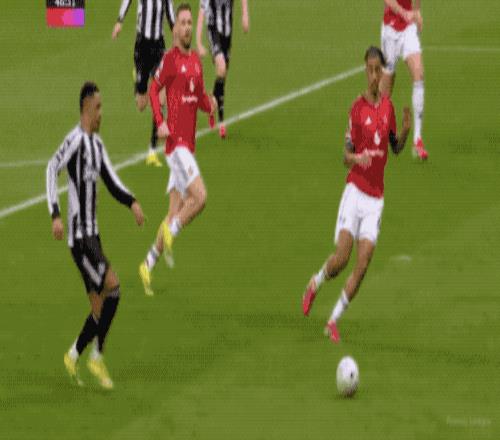 第90分钟,纽卡斯尔本场半场断球,特里皮尔送出妙传,替补出场的奥苏拉踉踉跄跄勉强避免了皮球出界,面对马拉西亚和马奎尔的防守,奥苏拉一脚冷射,攻破了曼联的球门。