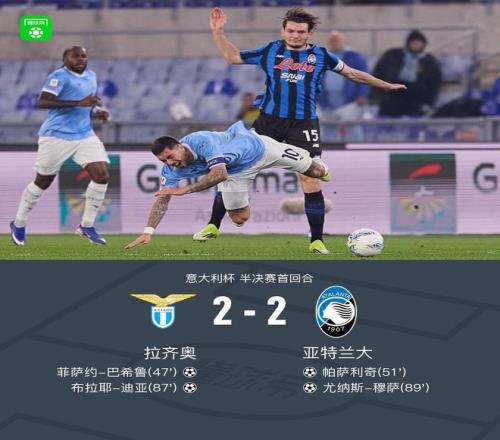 意杯半决赛首回合拉齐奥22亚特兰大,尤纳斯穆萨绝平比分