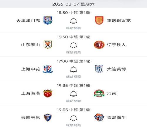 3,3月7日也就是本周六,中超第一轮还将进行5场比赛。