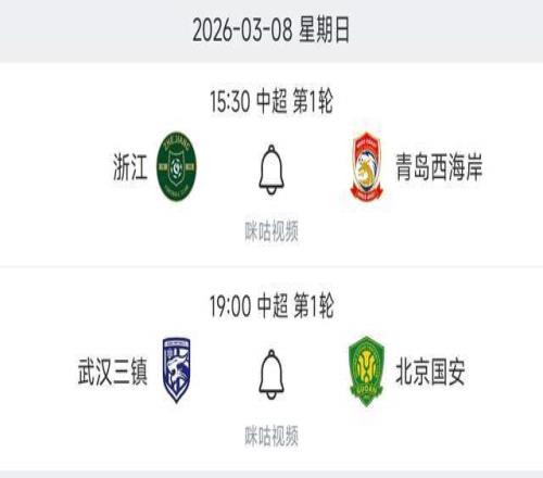 3月8日也就是本周日,将进行2轮中超比赛。