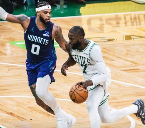 绿凯惨败黄蜂,这场比赛杰伦-布朗手感不佳,33分钟,19中7,三分4中1,罚球6中5,拿到20分11篮板7助攻,命中率36.8%,三分命中率25%,但他隔扣迪亚巴特的一球引爆北岸花园球馆。