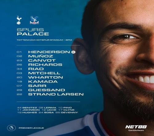水晶宫首发:1-迪恩-亨德森、34-里亚德、26-理查兹、23-康沃、2-穆尼奥斯、20-亚当-沃顿、18-镰田大地、3-米切尔、7-伊斯梅拉-萨尔、29-盖桑、22-拉森