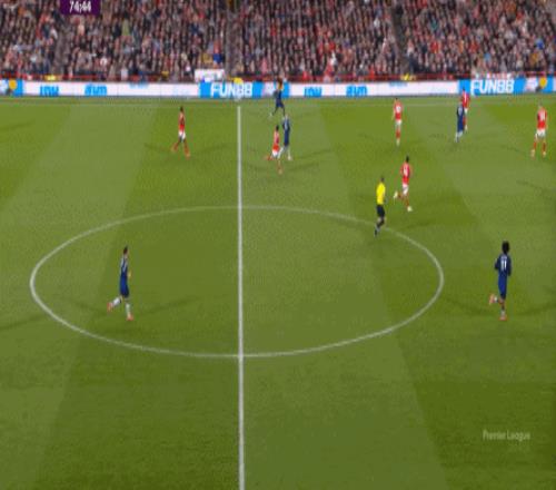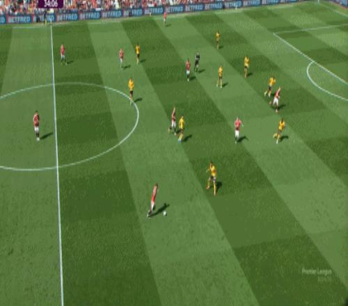 自己来到了边路,或者身前空间广袤,可以试着自己突破,但是,戈登选择了对自己球队推进成功率更高的线路:
