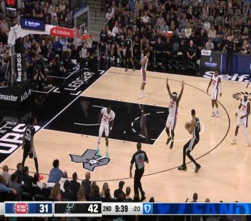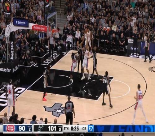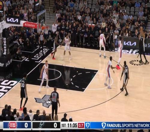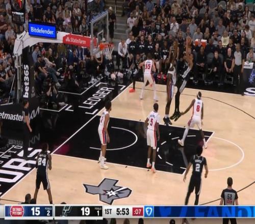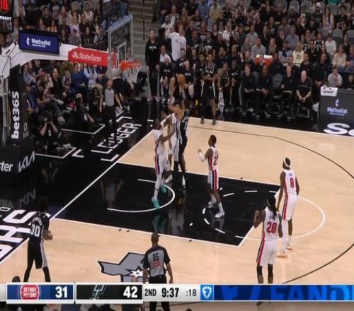 半场结束,文班亚马得到24分,他在第二节送出了一记惊艳四座的十佳球补扣,当时他一个假动作直接晃飞斯图尔特,然后连过多人突到篮下,上篮不进后,完成了一记补扣。