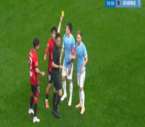 随后,视频助理裁判介入判罚,并且要求主裁判回看慢镜头。从慢镜头来看,姜至鹏故意肘击韦林顿?;乜绰低分?,主裁判做出改判,向姜至鹏出示红牌,这是2026赛季中超的第一张红牌。