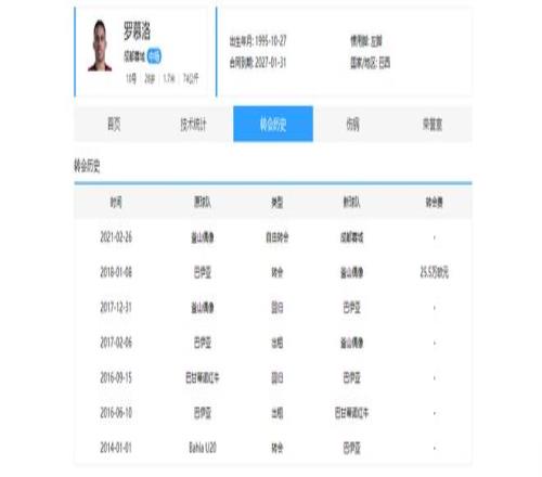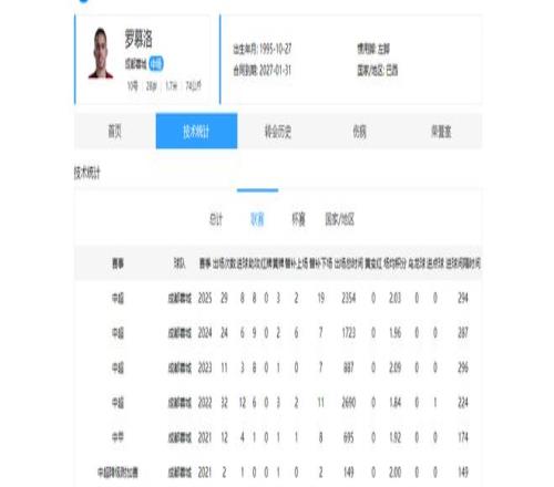 该球员95年10月出生,现今30岁,身高1米70,身价180万欧,巴西籍,目前效力于成都蓉城俱乐部。