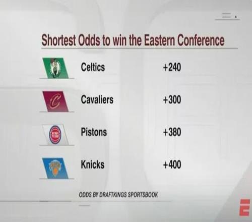 随着塔图姆这位六届全明星前锋回归,凯尔特人本赛季东部冠军赔率飙升,顺势力压骑士登顶第一,活塞第三,尼克斯第四。