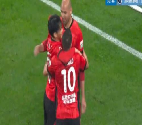 然而,姜至鹏第15分钟肘击韦林顿,成了比赛的转折点。在姜至鹏被红牌罚下之后仅仅5分钟,韦世豪左路斜传,费利佩顺势回做,韦林顿扫射破门,成都蓉城扳平了比分。
