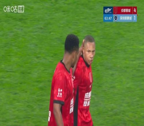 紧接着成都蓉城趁机扳平比分,第20分钟费利佩助攻韦林顿攻入加盟首球,比分改写为1-1。