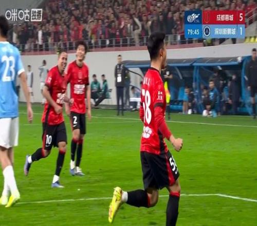 第79分钟,罗慕洛送出写意传中,替补登场的小将廖荣祥头球再下一城,成都蓉城再度扩大比分为5-1。