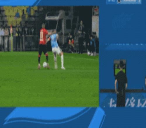 VAR介入,慢镜头可以看到姜至鹏有明显的肘击动作,韦林顿·席尔瓦的上嘴唇已经出血。主裁判作出改判,取消黄牌,改判红牌,新鹏城队长被罚下场。