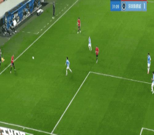 第31分钟,韦林顿找到新鹏城的防守空位,罗慕洛的传中被挡了一下,费利佩抢射破门。