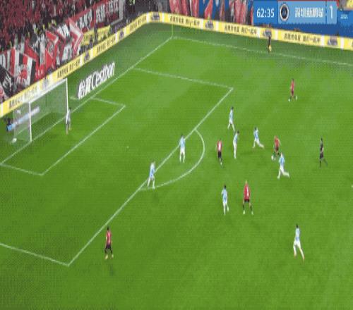 上半场补时阶段,王东升右路传中,费利佩抢点扰乱防守,胡荷韬化身第二中锋,收获进球。