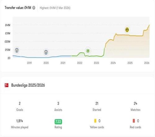 恩梅查与多特蒙德的合同将持续至2028年,不过他在德国的长期未来仍存在不确定性,欧洲多家俱乐部已开始对这位近几个赛季状态回升的球员表达兴趣。
