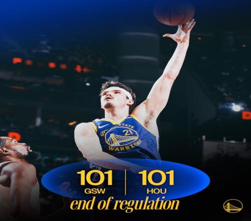史密斯篮下制造犯规两罚一中,霍福德三分不中,申京篮下打3分成功,第四节还有1分40秒时火箭队以97-95领先。梅尔顿左侧45度角出手三分命中,勇士队98-97反超。申京保持篮下威胁,勾手打进,99-98?;舾5率植蝗?,底角投中三分,勇士队以101-99领先。申京延续进攻状态,转身勾手命中,第四节还有27.6秒时双方战成101平。勇士队暂停后梅尔顿急停跳投,杜兰特被吹犯规,火箭队提出挑战。裁判回看录像后改判,杜兰特盖帽成功,双方中圈争球,比赛还剩下6.5秒?;舾5掳亚虿Ω范?,科尔在还有2.3秒时请求暂停。勇士队发边线球失误,最后0.3秒汤普森空接上篮不中,比赛进入加时赛。