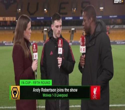 足总杯1/8决赛,利物浦客场3-1战胜狼队,本场传射建功的罗伯逊赛后接受了ESPN的采访。