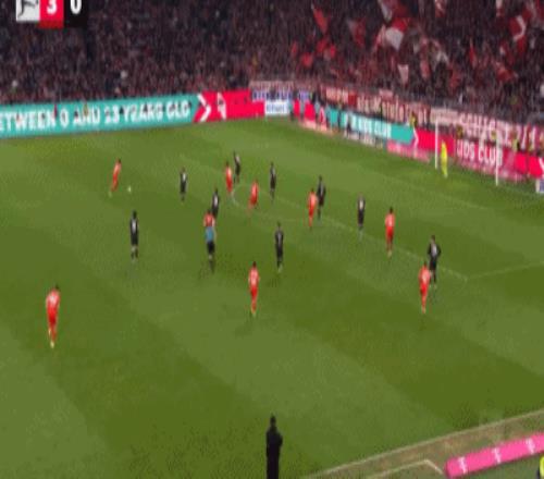 第32分钟,格雷茨卡挑传,迪亚斯凌空抽射破门,拜仁1-0门兴