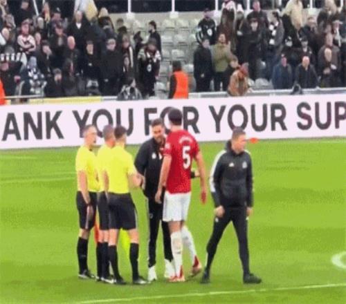 比赛中,马奎尔多次情绪激动,甚至朝助教史蒂夫·霍兰德大吼。比赛结束后,他还缠着裁判组不断投诉。马奎尔不高兴很容易理解,比赛当日恰逢他33岁生日,却收到被判刑和球队输球两大打击。