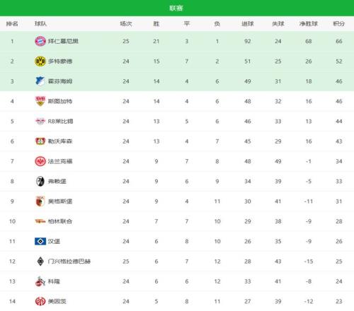 最终,拜仁4-1轻松取胜,不仅完成对门兴的赛季双杀,还豪取各项赛事6连胜。在积分榜上,南大王的领先优势已经扩大到14分,德甲冠军几乎没有悬念。