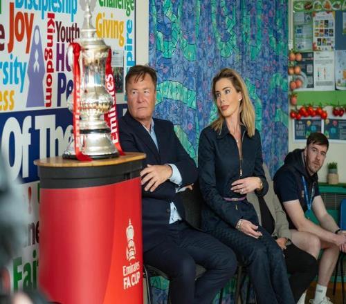 在与阿森纳的比赛前,拉德福德夫妇还带着足总杯奖杯造访了当地一所小学。他们是乘坐自家的直升机抵达的。