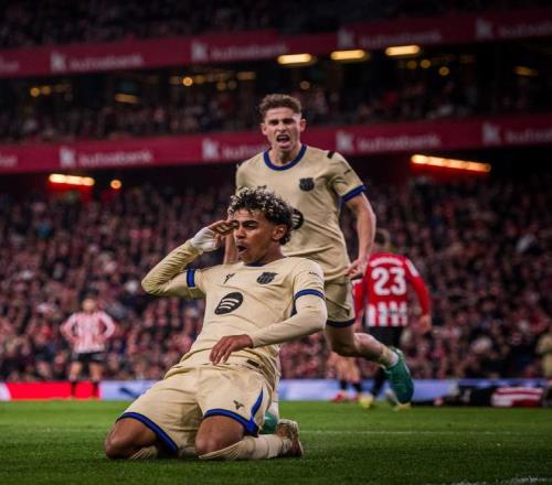 此役客场对阵毕尔巴鄂竞技,首发出战的亚马尔在比赛第68分钟破门,打入全场唯一进球,帮助巴萨1-0取胜。