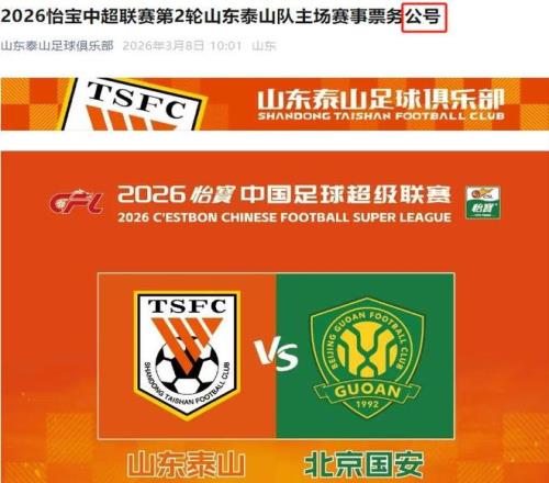 最低150!泰山发布对阵国安票务,比去年下调,有望率先负分清零