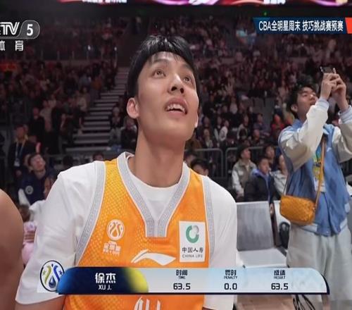 第2位出场的是卫冕冠军徐杰,他在开局阶段表现尚可,随后在底角三分连续三分命中,但节奏偏慢,导致最终用时63.5秒。